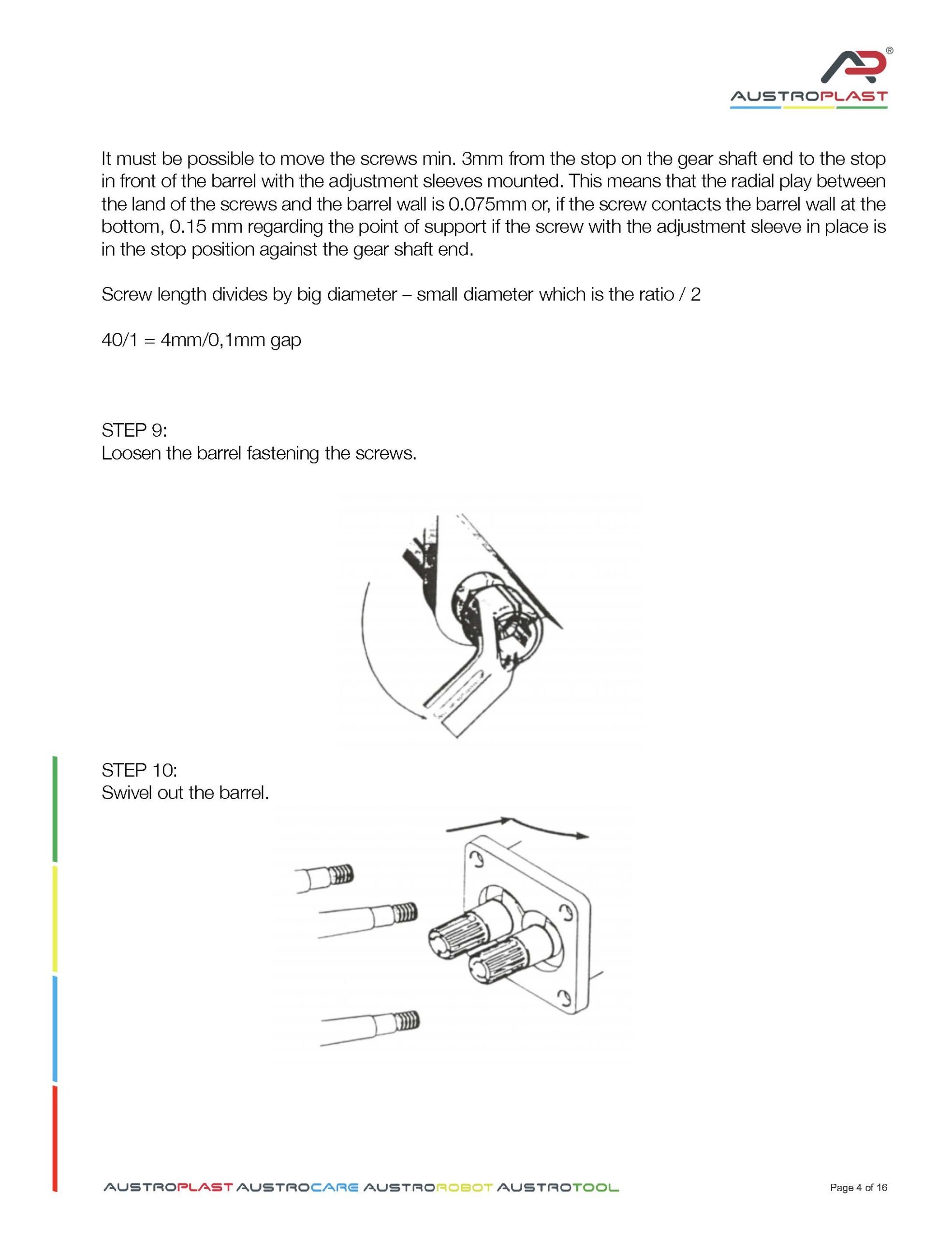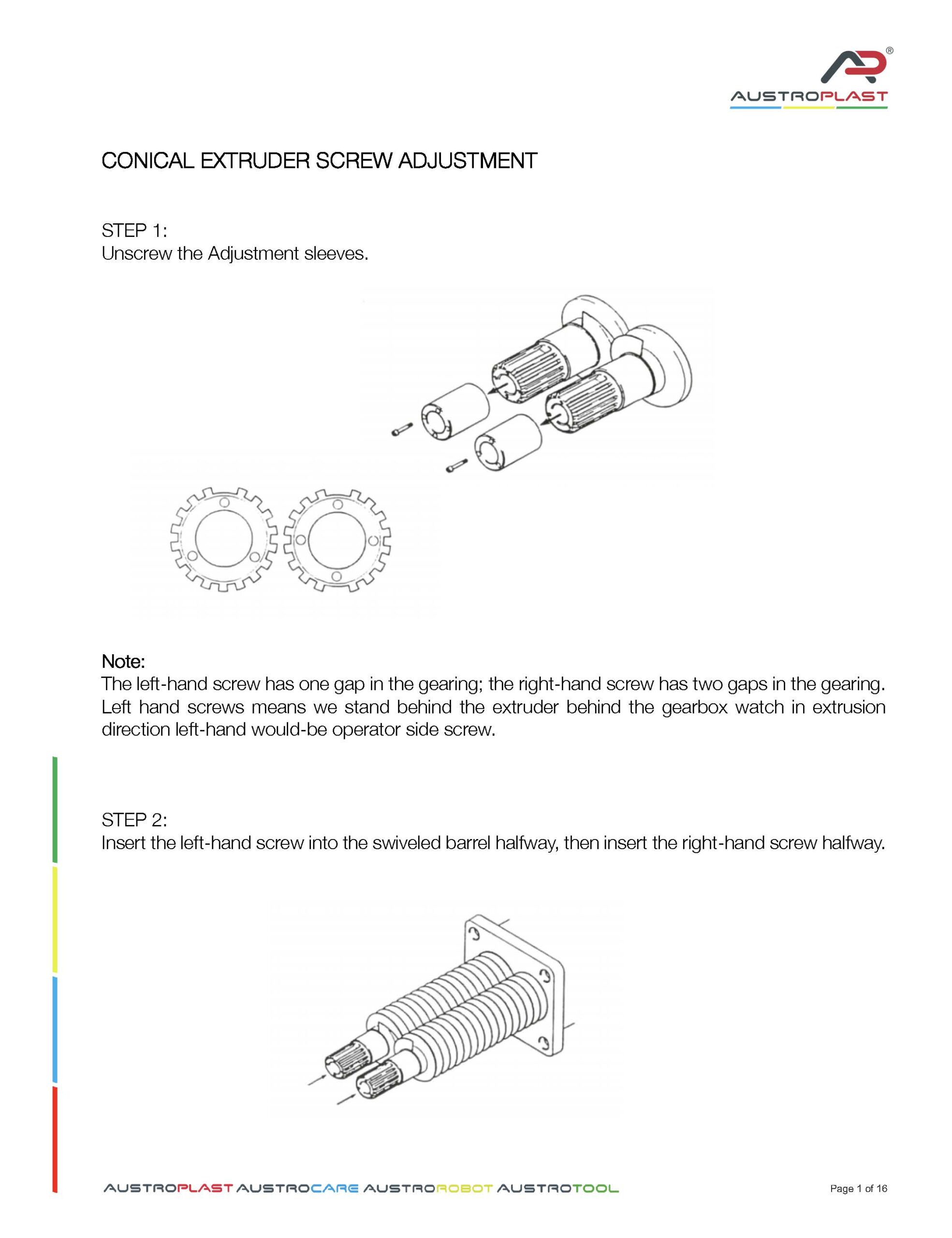 CONICAL TWIN SCREW EXTRUDER SCREW ADJUSTMENT